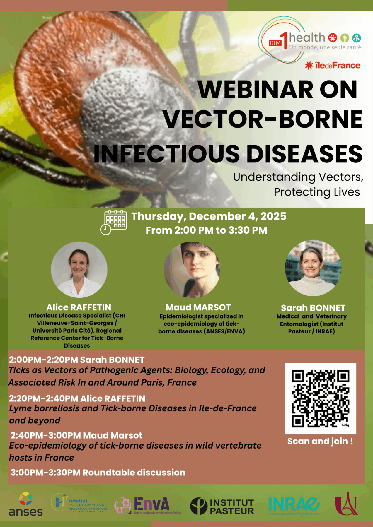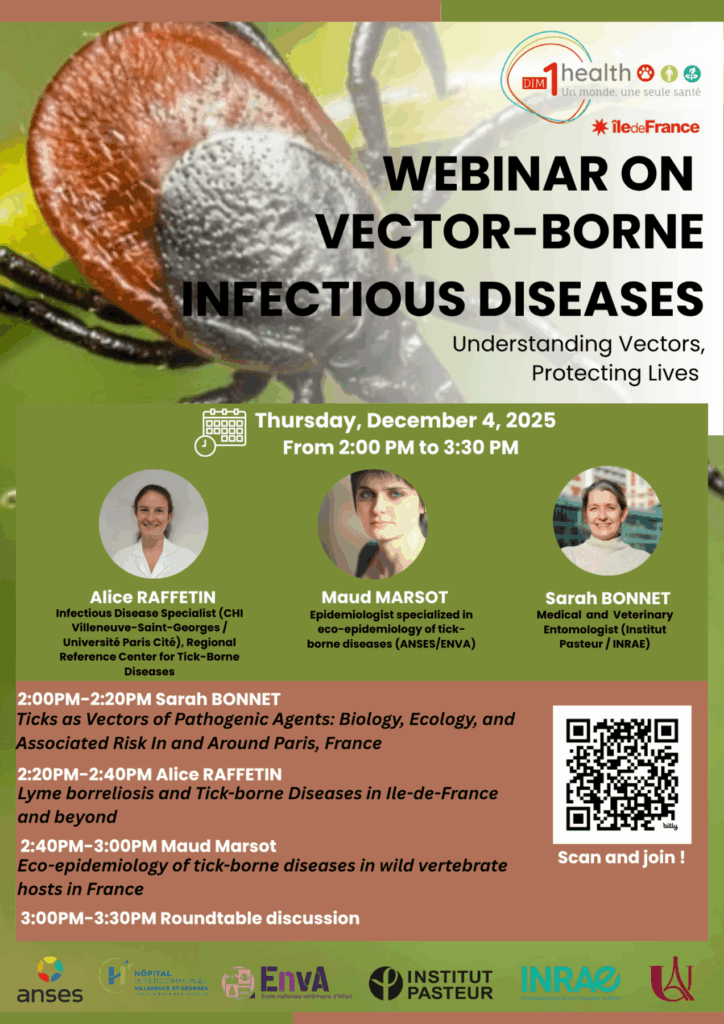 Vendredi 09 février 2024 09h-12h Lien: Lien zoom de la conférence SÉMINAIRE ONE HEALTH : Des oiseaux et des hommes, les agents pathogènes partagés. Dr Gaëlle Gonzalez – UMR Virologie ANSES Maisons-Alfort Dr Béatrice Grasland – Unité virologie, immunologie, parasitologie aviaires et cunicoles [...]